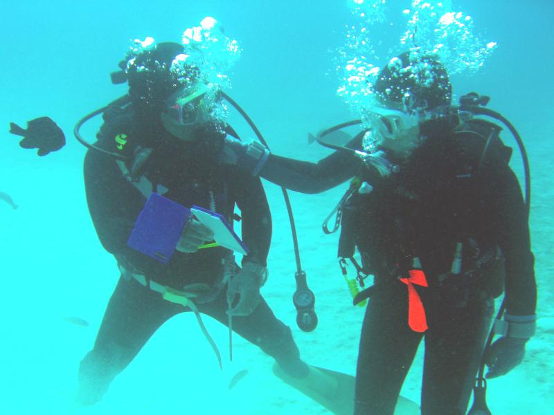 とてもメンタルがタフなお客様でした。天気も良く気温は20℃を超え、水温も高く、長く水中にいられました。でも余分の脂肪が無いSatoは震えていました(笑)。