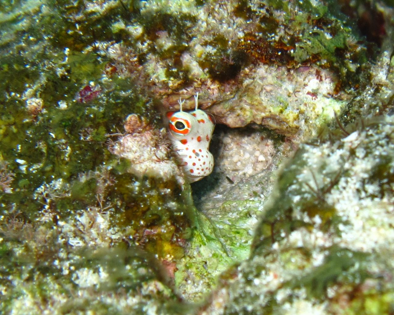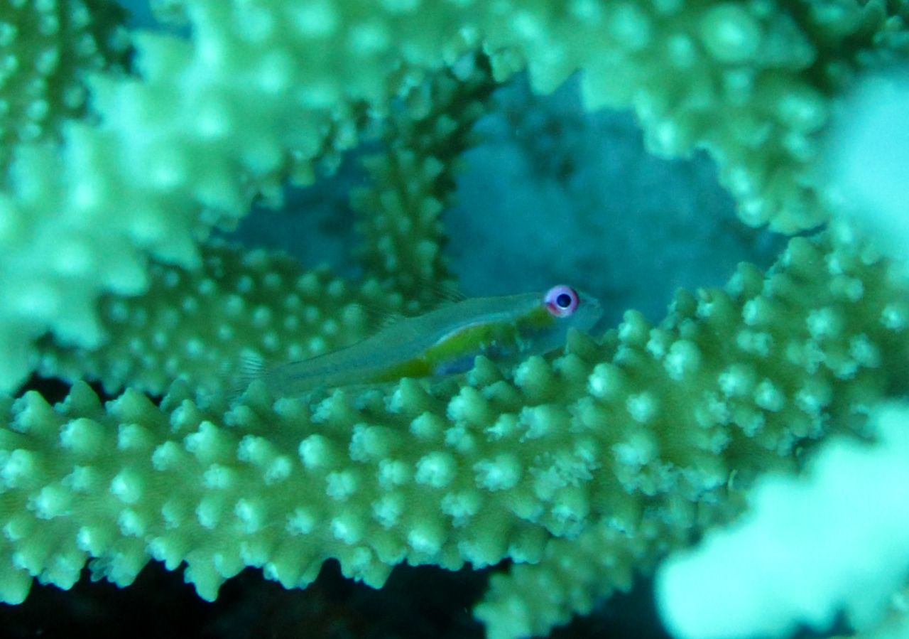 2本目は、北風に変わって、南のポイントへ。でも海の中はニゴニゴで、透明度が10メートルもない状況でした。その中で何とか撮れたのは、アカメ君でした。
