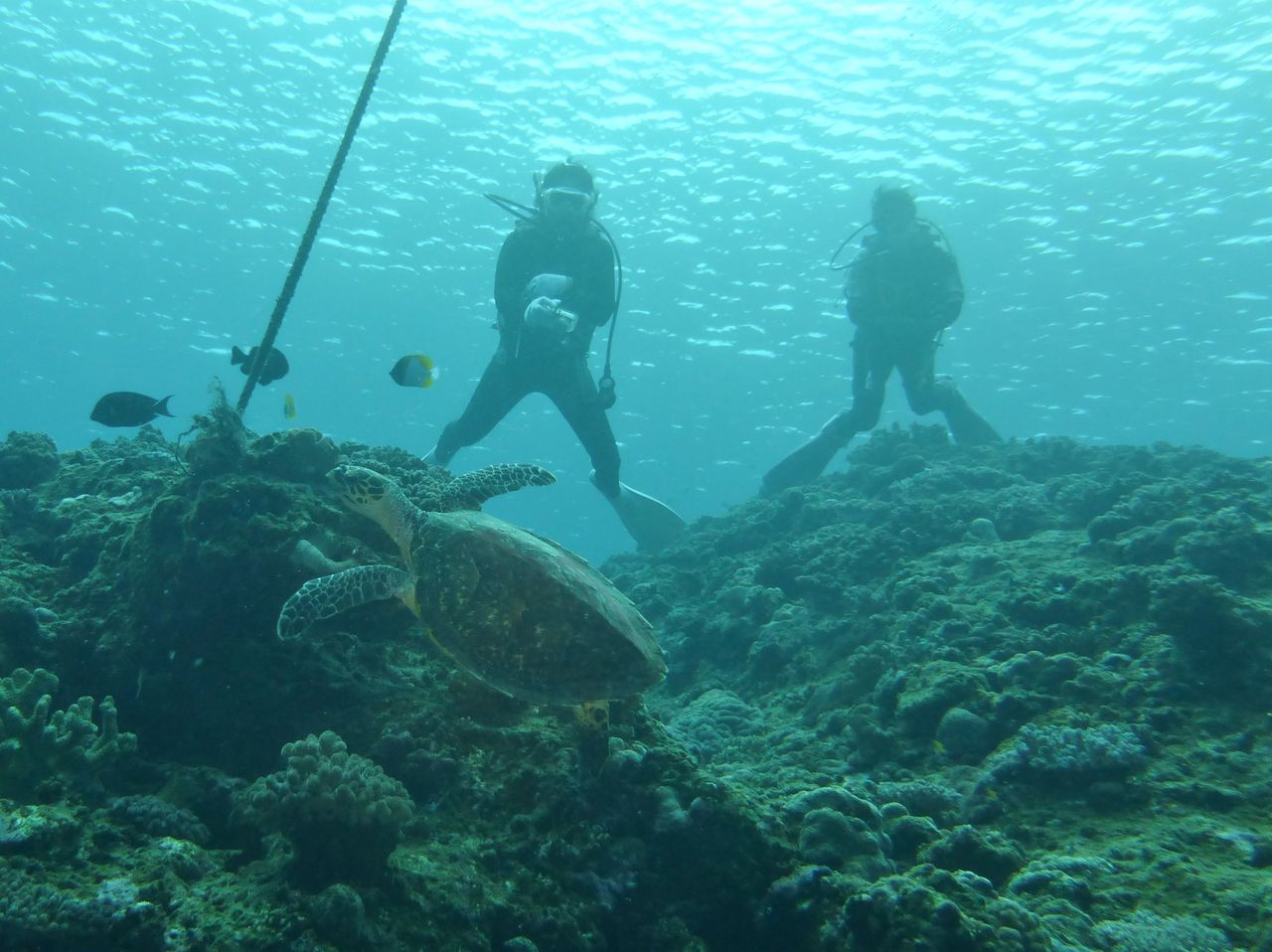 いつものコースを回ってブイに帰ってきたら子亀がお昼寝