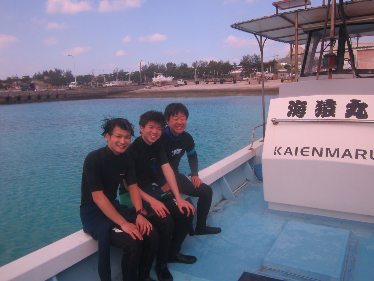 1回生の濱千代です。今回伊江島ではじめてのダイビングを経験させていただきました。インストラクターの安村さんによる愛のあるご指導によってとても貴重な経験ができました!海も綺麗で気持ちの良いダイビングでした!